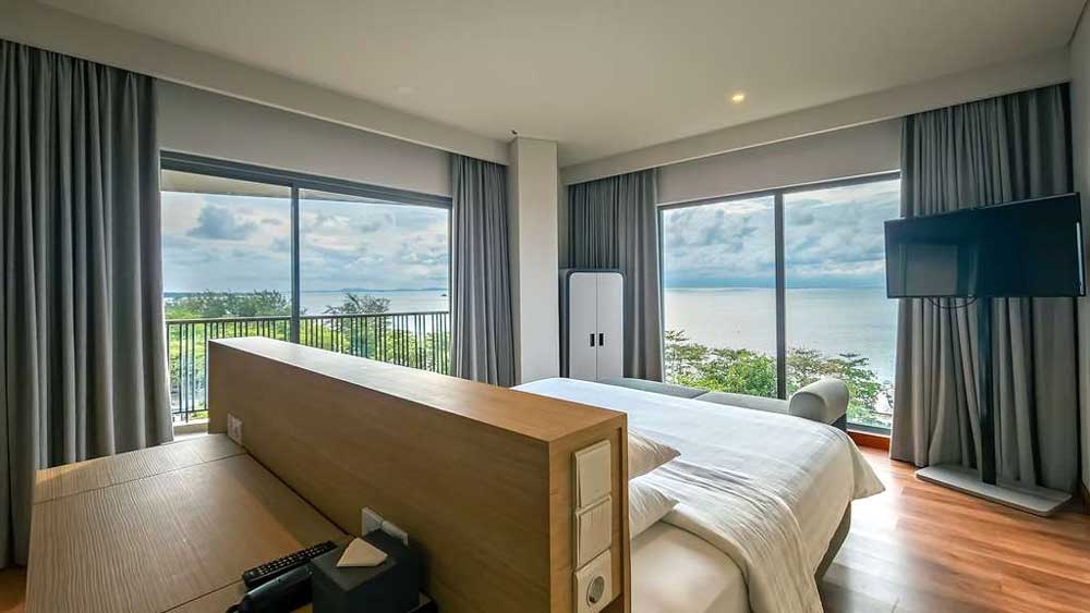 Fasilitas lainnya mencakup gym 24 jam, kolam renang dengan view pantai, laundry, hingga layanan wisata. Menginap di hotel bintang empat ini, harga mulai Rp700 ribuan per malam, cocok bagi kamu yang ingin kualitas internasional di suasana tropis.