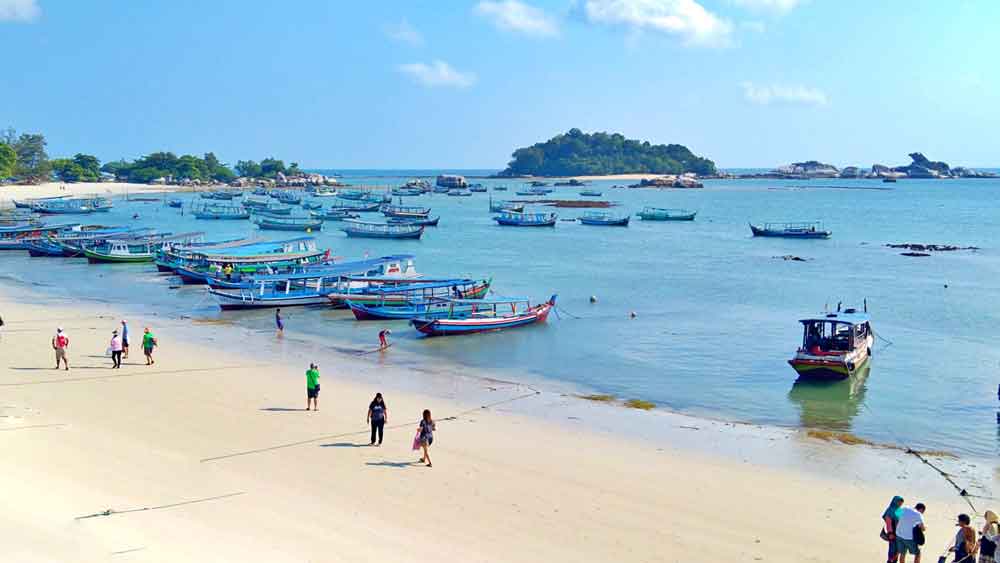 Pantai ini bukan hanya terkenal karena panorama uniknya, tetapi juga sebagai titik keberangkatan utama untuk hopping island. Dari sini, wisatawan dapat menyewa perahu nelayan tradisional untuk menjelajahi pulau-pulau sekitar, seperti Pulau Lengkuas, Pulau Burung, Pulau Pasir, Pulau Kepayang, dan lain-lain.