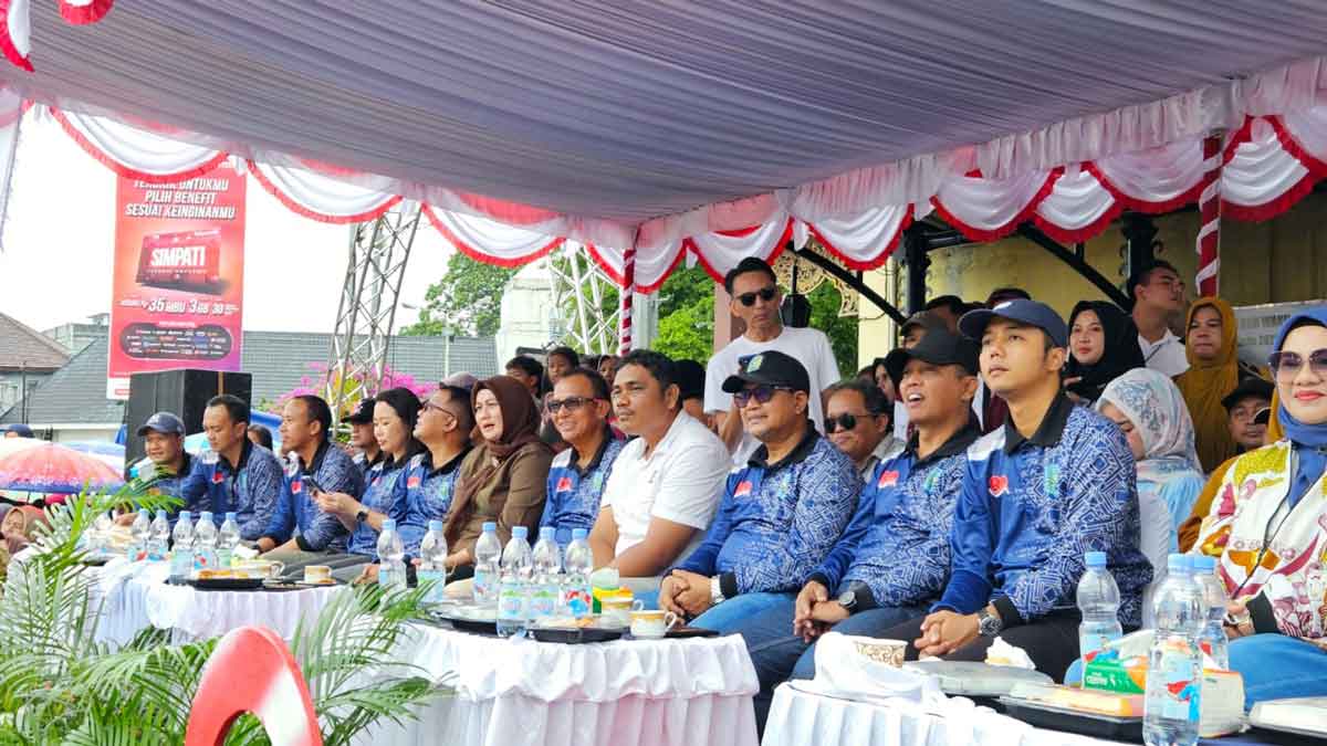 Di Bundaran Satam, pusat ikon Kota Tanjungpandan, Bupati Belitung Djoni Alamsyah Hidayat bersama Wakil Bupati Syamsir dan jajaran Forum Koordinasi Pimpinan Daerah (Forkopimda) tampak serius sekaligus gembira menyaksikan setiap penampilan.